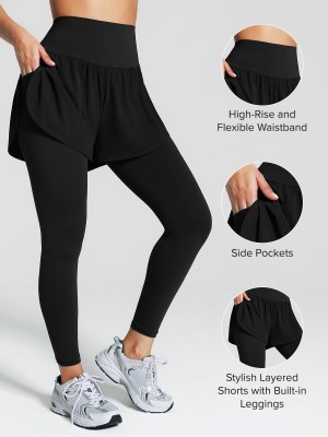 Custom Solid Yoga Leggings Layered Combo Full Length Side Pockets High Waist Women's Sports Pants