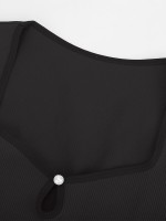 3. Sexy hollow low round neck: reveal beautiful clavicle, hollow neckline + pearl button embellishment, modify and lengthen the neck visual effect;