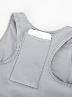 Women's Racerback Sports Bra Eco-Friendly Medium Support Pocket Front Zipper Guard Removable Cups Wide Straps