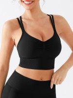 Wrinkle Style Women's Sports Bra Breathable Eco-Friendly Seamless Spandex/Nylon Plus Size Medium Support V-neck